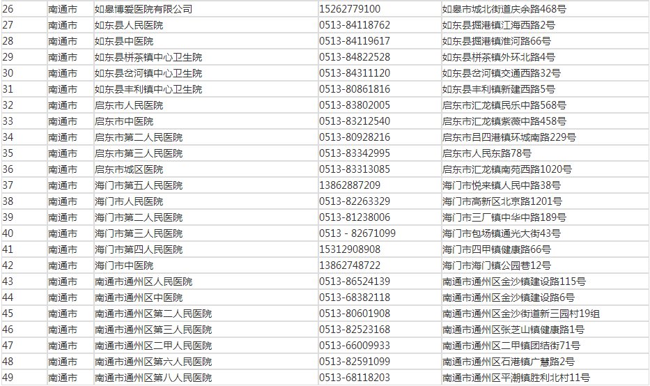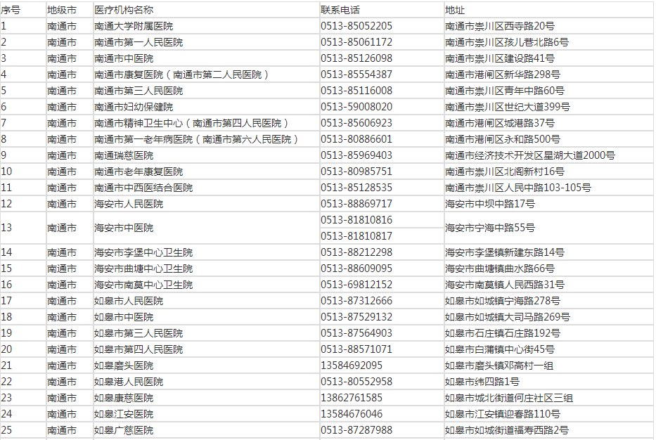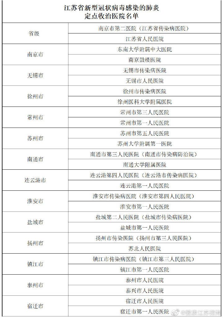 一、江苏省新新冠状病毒感染的肺炎定点收治医院名单