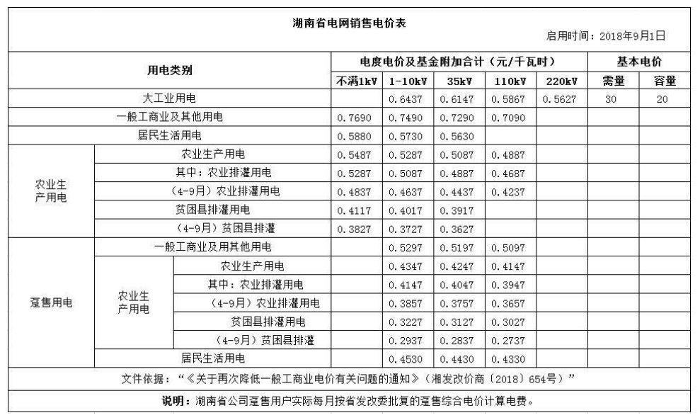 岳阳电费收费标准