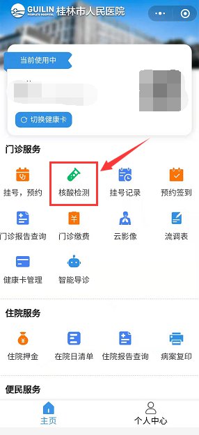 第三步:进入服务页面,点击“门诊服务”——“核酸检测”