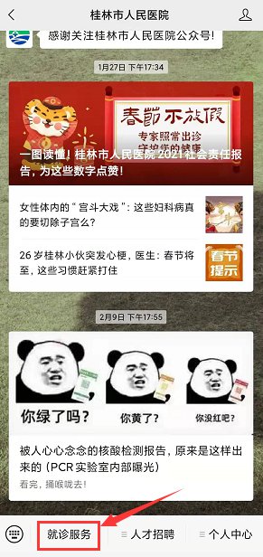 第一步:关注“桂林市人民医院”微信公众号