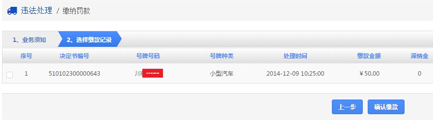 在该步骤,用户需认真确认需要缴款的违法记录。