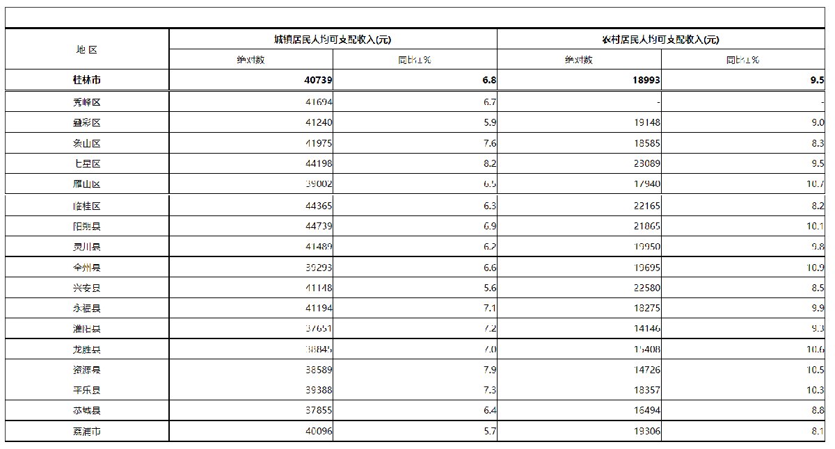 2021年桂林市县区城镇、农村居民人均可支配收入