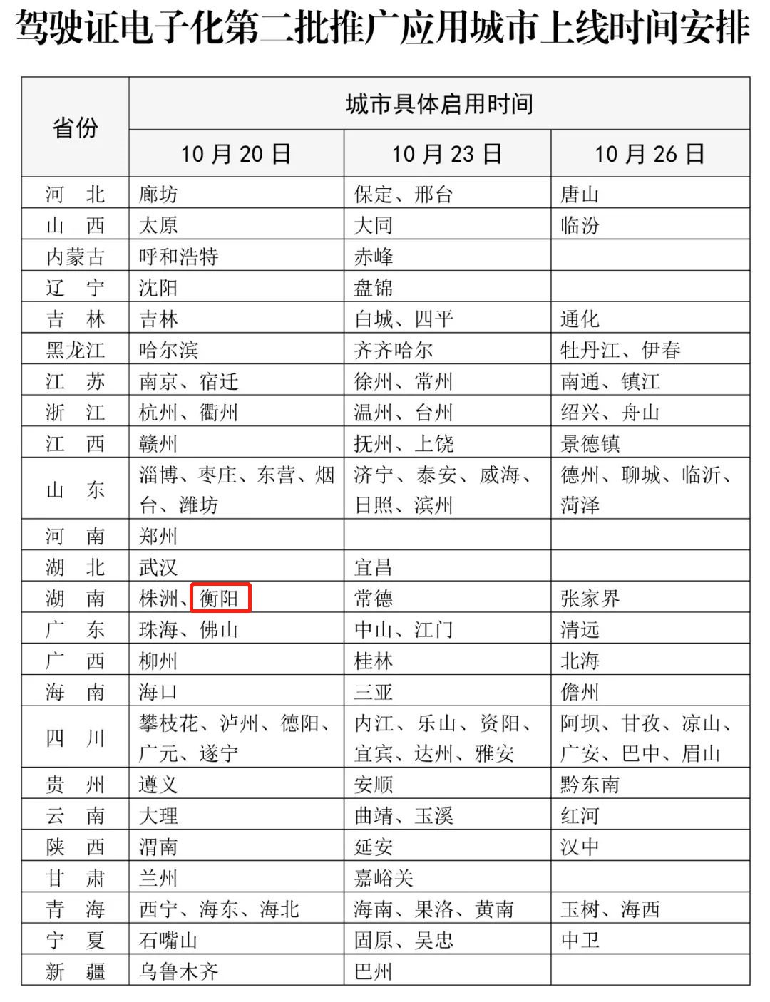 为保证电子驾驶证及时、顺利发放,第二批110个推广应用城市将自10月20日至26日错峰上线电子驾驶证申领功能,驾驶人可以对照本地启用时间安排,通过全国统一的“交管12123”APP申领电子驾驶证。推广应用城市发放的电子驾驶证在全国范围内有效,可以在办理交管业务、接受执法检查时出示使用,并可以拓展客货运输、汽车租赁、保险购置等社会应用场景。