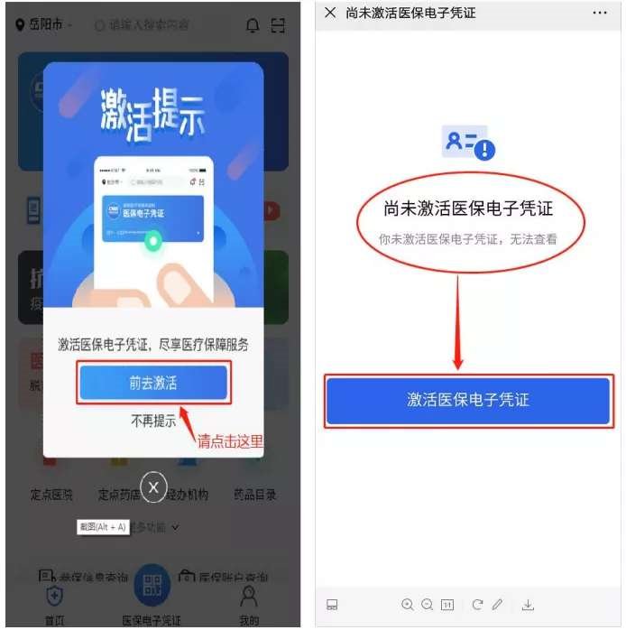 第二步:定位选择“岳阳市”,然后点击“医保电子凭证”;