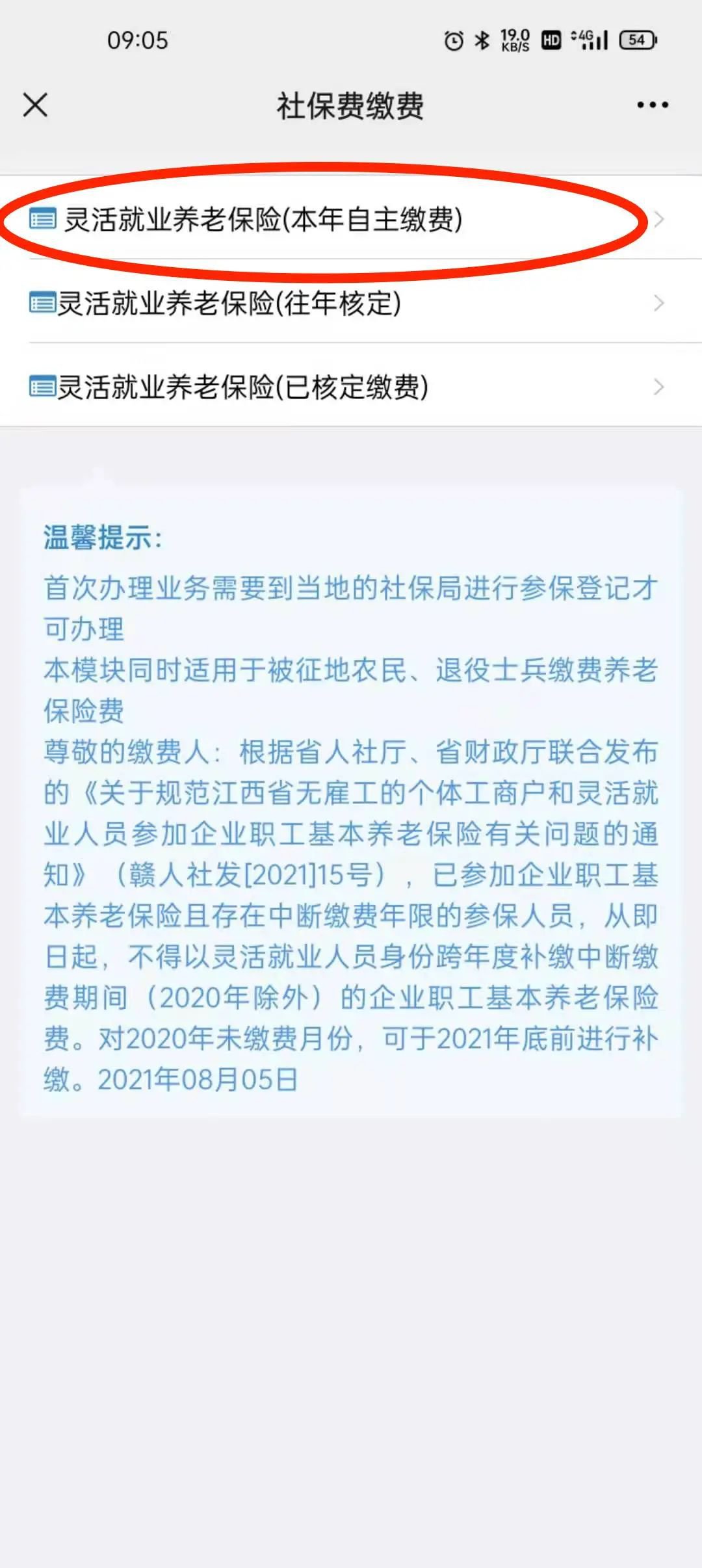 第三步:选择灵活就业养老保险(本年自主缴费)