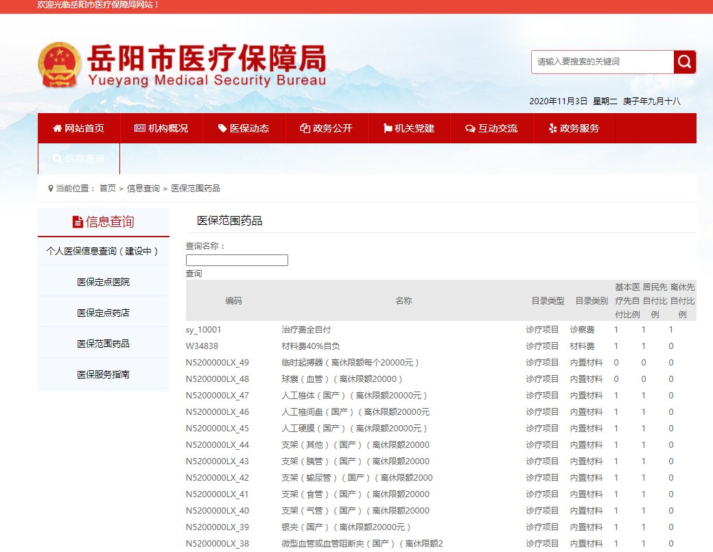 岳阳医保范围药品
