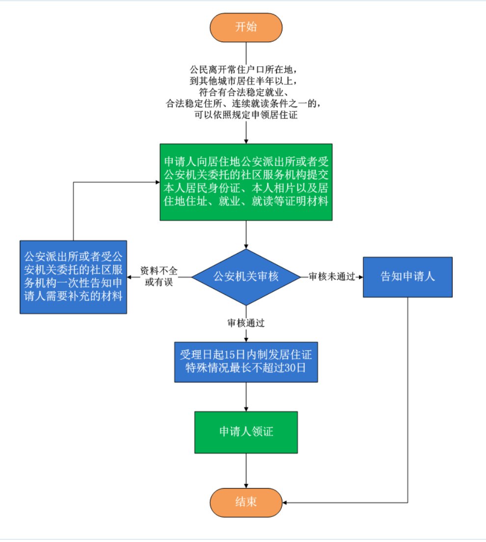 受理、审核、制证、发放等流程与居住证申领流程一样。办理换领居住证时,需归还原居住证。