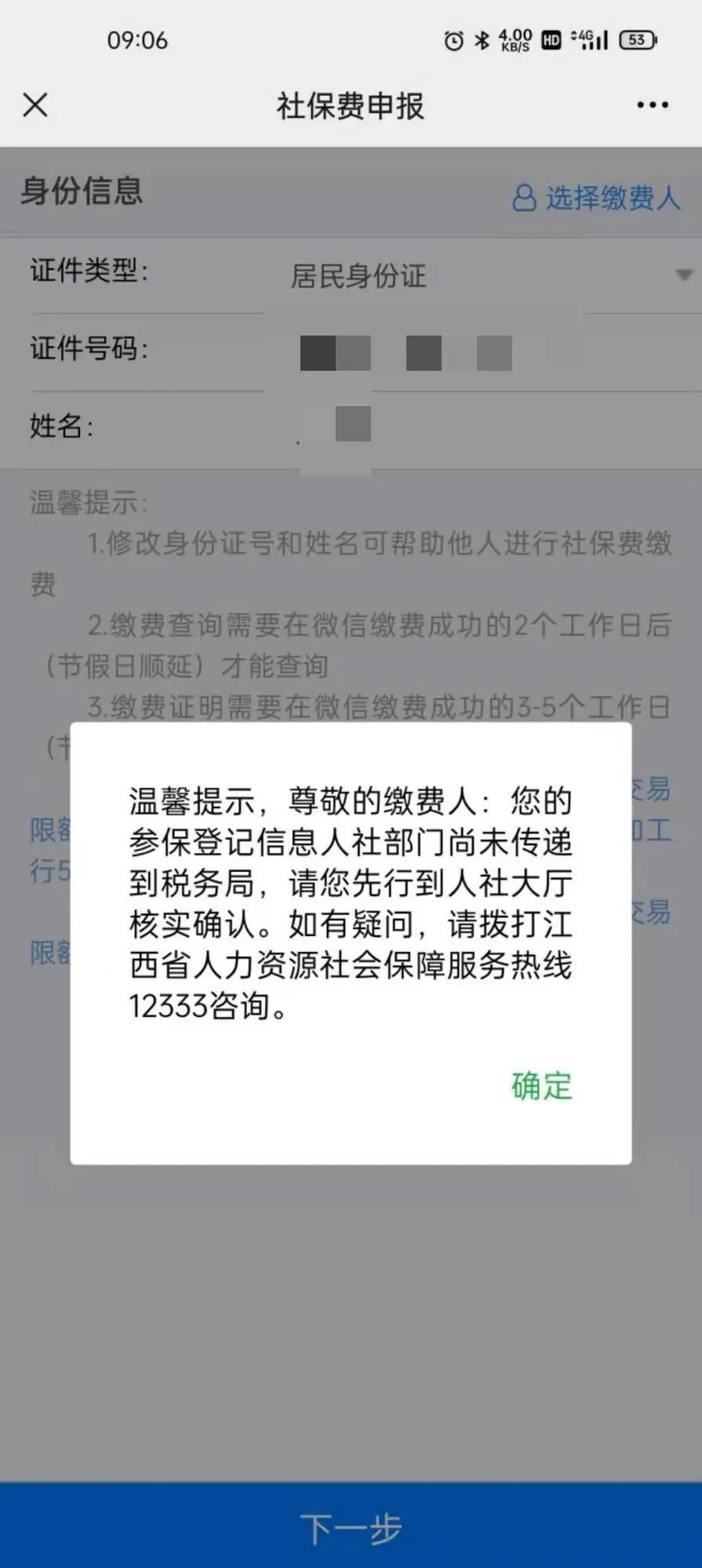 提示:如果出现以下信息,请联系当地社保经办机构。(点击查看:赣州市社保经办机构业务咨询热线一览)