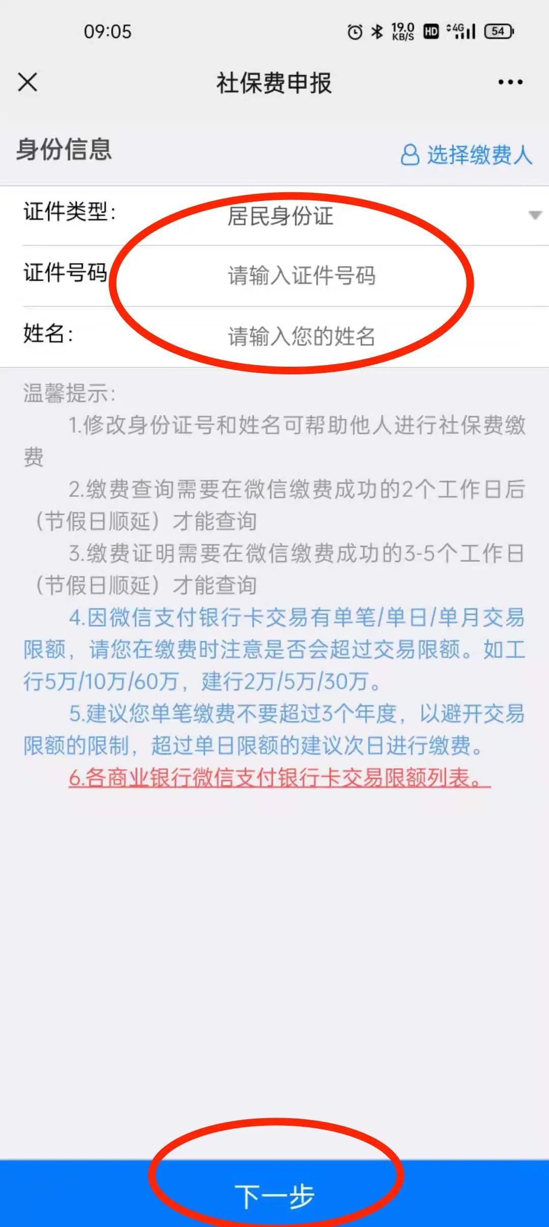 第四步:正确填写个人信息(身份证号码、姓名) --> 选择养老保险本年自主缴费 -->自由选择缴费档次 --> 输入缴费起止年月 --> 点击查询然后缴费