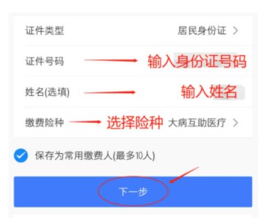输入身份证号码、姓名,选择险种“大病互助医疗”。