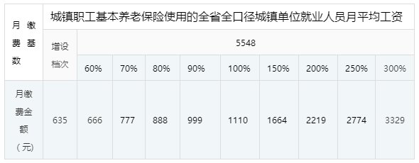 二、2021年城镇职工基本养老保险使用的全省全口径城镇单位就业人员月平均工资为5548元。2021年月缴费基数下限标准为3176元,月缴费基数上限标准为16644元。