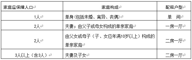●一个符合保障条件的家庭只能承租一套公共租赁住房。考虑家庭代际、性别和人口等因素,保障家庭配租标准原则如下表: