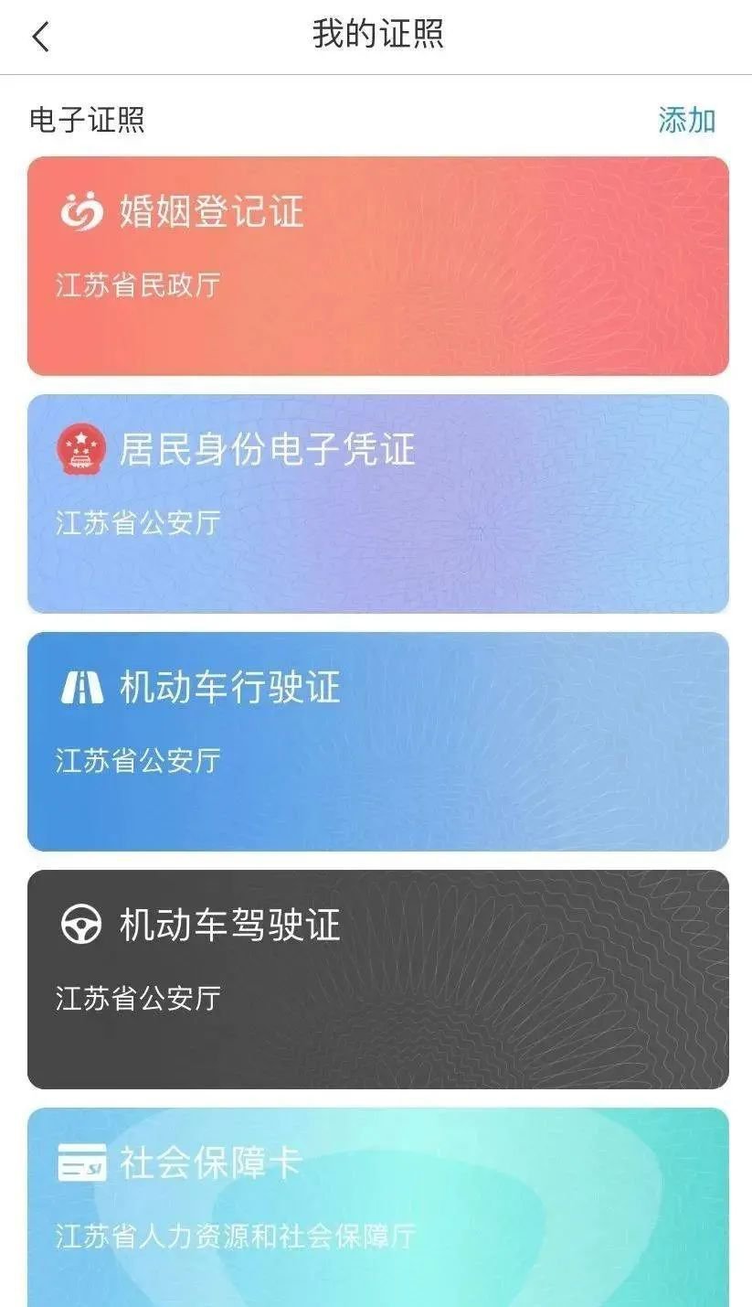 登录“江苏政务服务”APP,在“我的”页面选择“我的证照”。