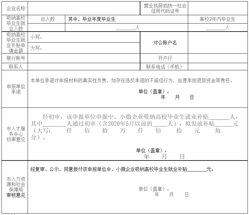 附件:1.企业或社会组织吸纳高校毕业生就业补贴申请表