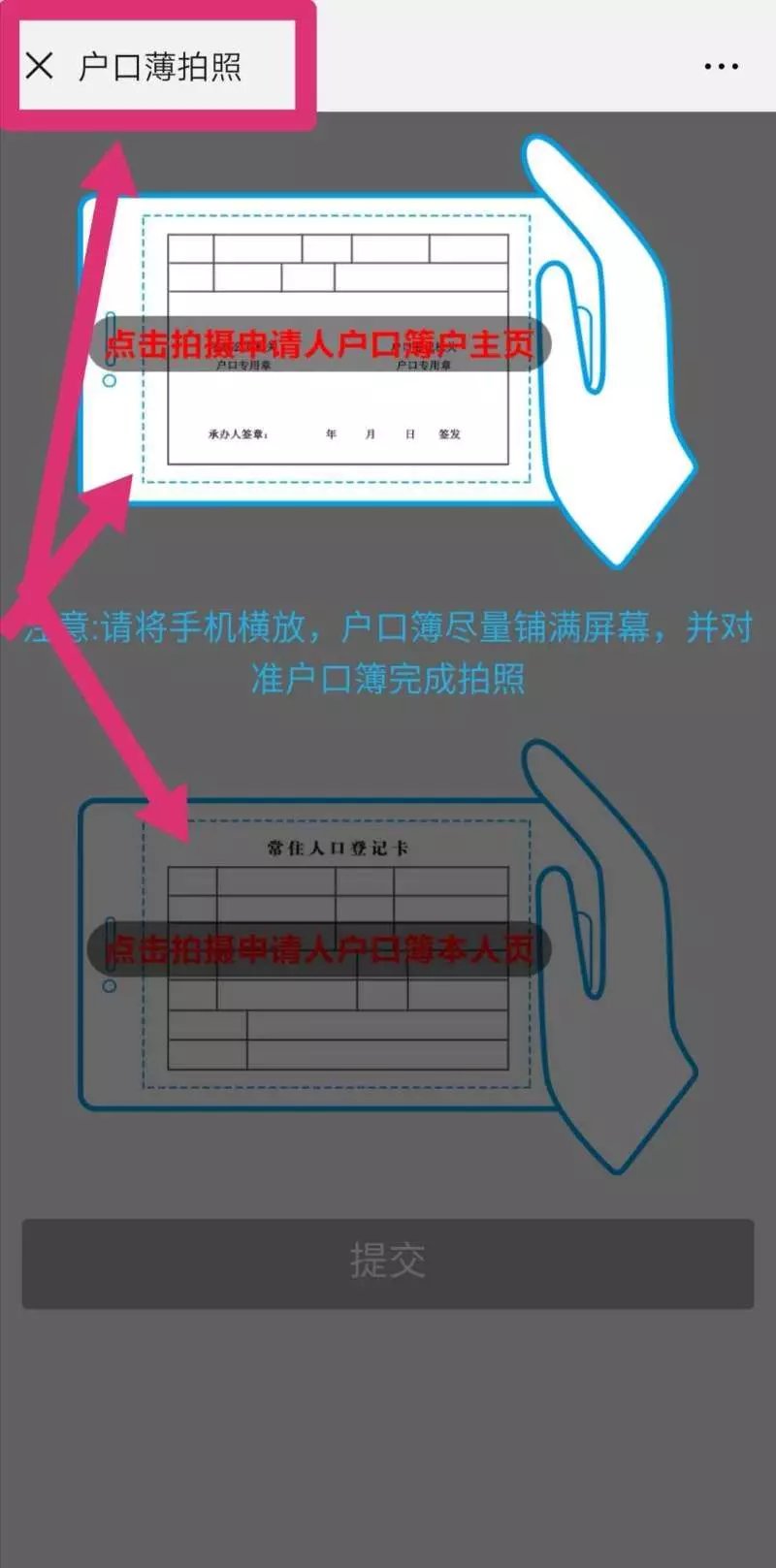 选择拍摄身份证照片或者户口薄照片▼