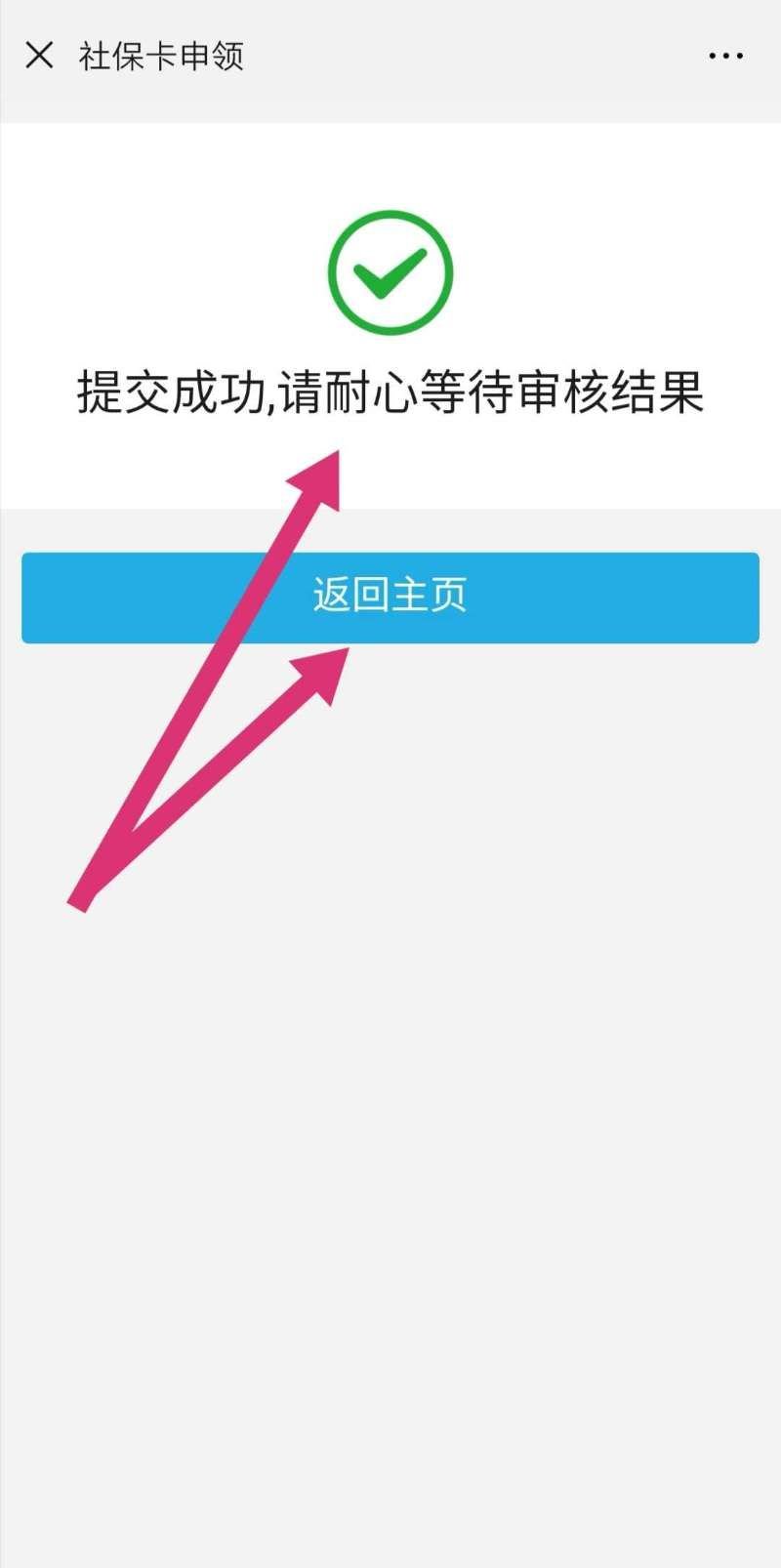 拍摄完成制卡照片后,点击“提交审核”。显示“提交成功,请耐心等待审核结果”页面后,表示制卡完成社保卡制卡申请步骤。