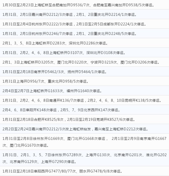 根据疫情防控需要,以及客流变化情况,铁路部门临时调整运输方案,停运以下旅客列车。已购买停运列车车票的旅客,可于票面乘车日期起30日内(含当日)办理退票手续:在中国铁路12306网站购买车票的旅客,如尚未换取纸质车票,可在网站直接办理退票;已换取纸质车票的旅客,请到车站窗口办理退票,以上均不收取手续费。旅客可通过铁路12306官方网站、车站公告等渠道,及时掌握列车运行情况,合理安排行程。