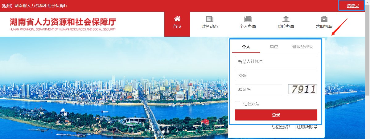 1、登录湖南省人力资源和社会保障厅,登录个人帐号(未注册的先注册)