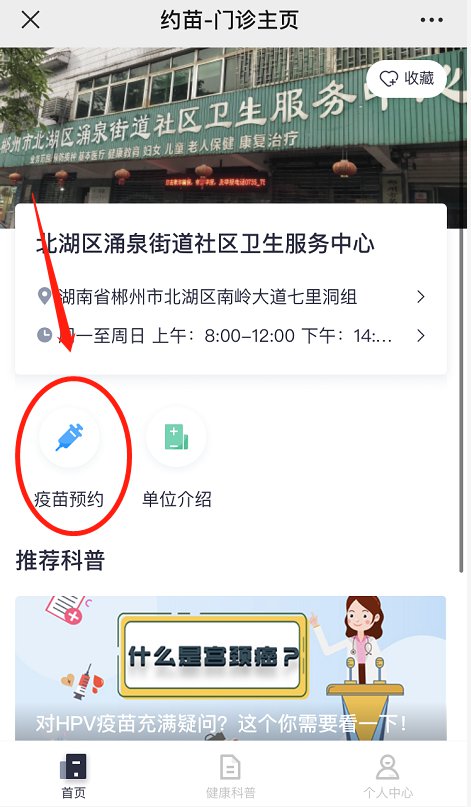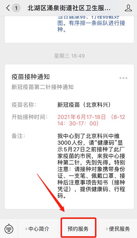 1.打开北湖区涌泉街道社区卫生服务中心公众号