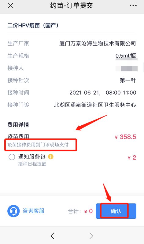 8.确认订单,预约成功,根据预约有效凭证提示的信息在预约接种时间内进行接种!