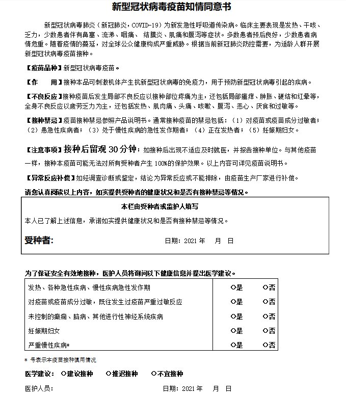 1.为加速接种流程,缩短排队时间,您可以点击链接提前下载、打印《接种档案表》,填写个人基本信息及反面“受种者”签名。