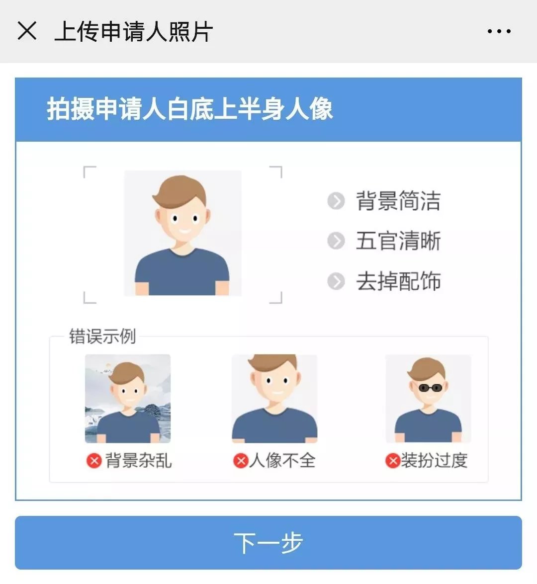 第五步:按要求上传申领人上半身照片或标准的证件照。