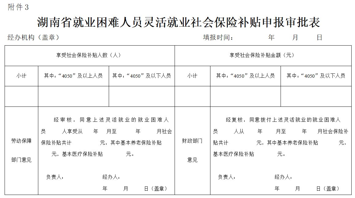 4.区人力资源和社会保障部门自受理灵活就业人员社会保险补贴申报之日起10个工作日内,对申报的就业困难人员资格、数量、享受社会保险补贴期限和补贴金额进行审核认定。经审核合格的,在《审批表》上签署意见并加盖公章,登陆省公共就业服务信息平台,操作审核流程,导出《湖南省就业困难人员灵活就业社会保险补贴申报审批表》(附件3)、全区《花名册》,签字并盖章后,报送所在区财政部门复核。