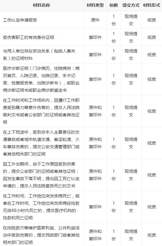 申请所需材料:身份证明、工伤认定申请表、医疗诊断书、劳动关系