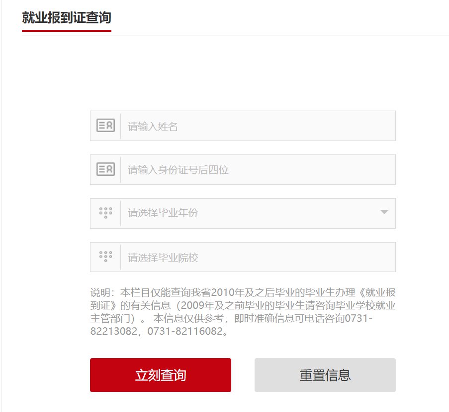 本栏目仅能查询我省2010年及之后毕业的毕业生办理《就业报到证》的有关信息(2009年及之前毕业的毕业生请咨询毕业学校就业主管部门)。 本信息仅供参考,即时准确信息可电话咨询0731-82213082,0731-82116082。
