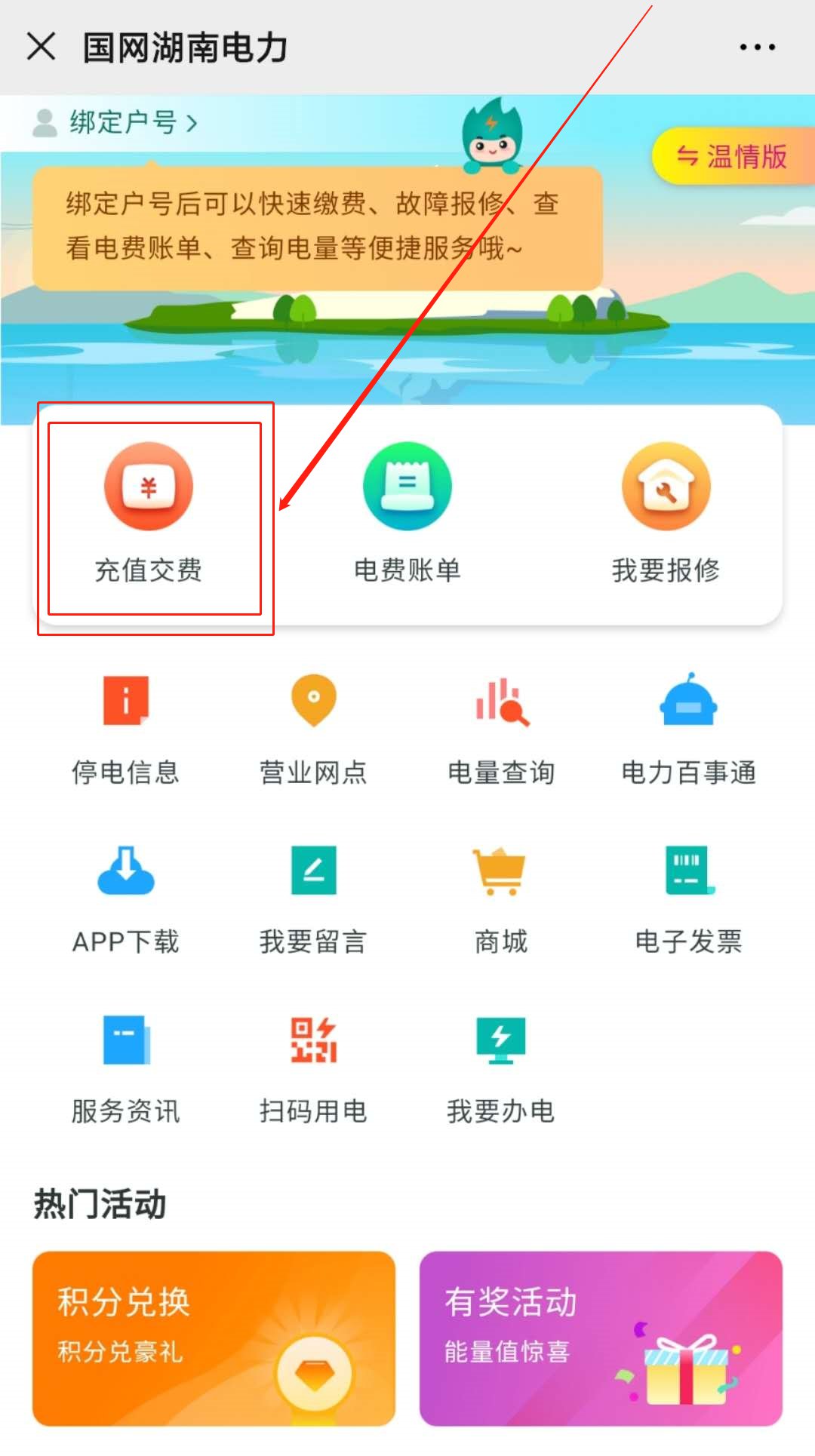 第一步:选择“网上国网”APP、“国网湖南电力”微信公众号、电E宝充值方式