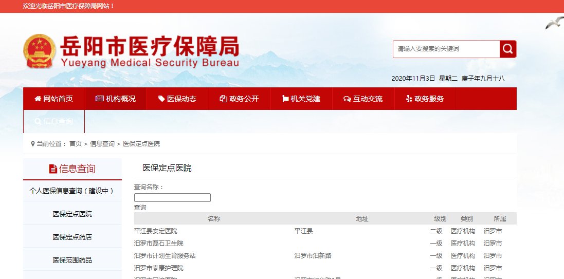 岳阳医保局定点医院