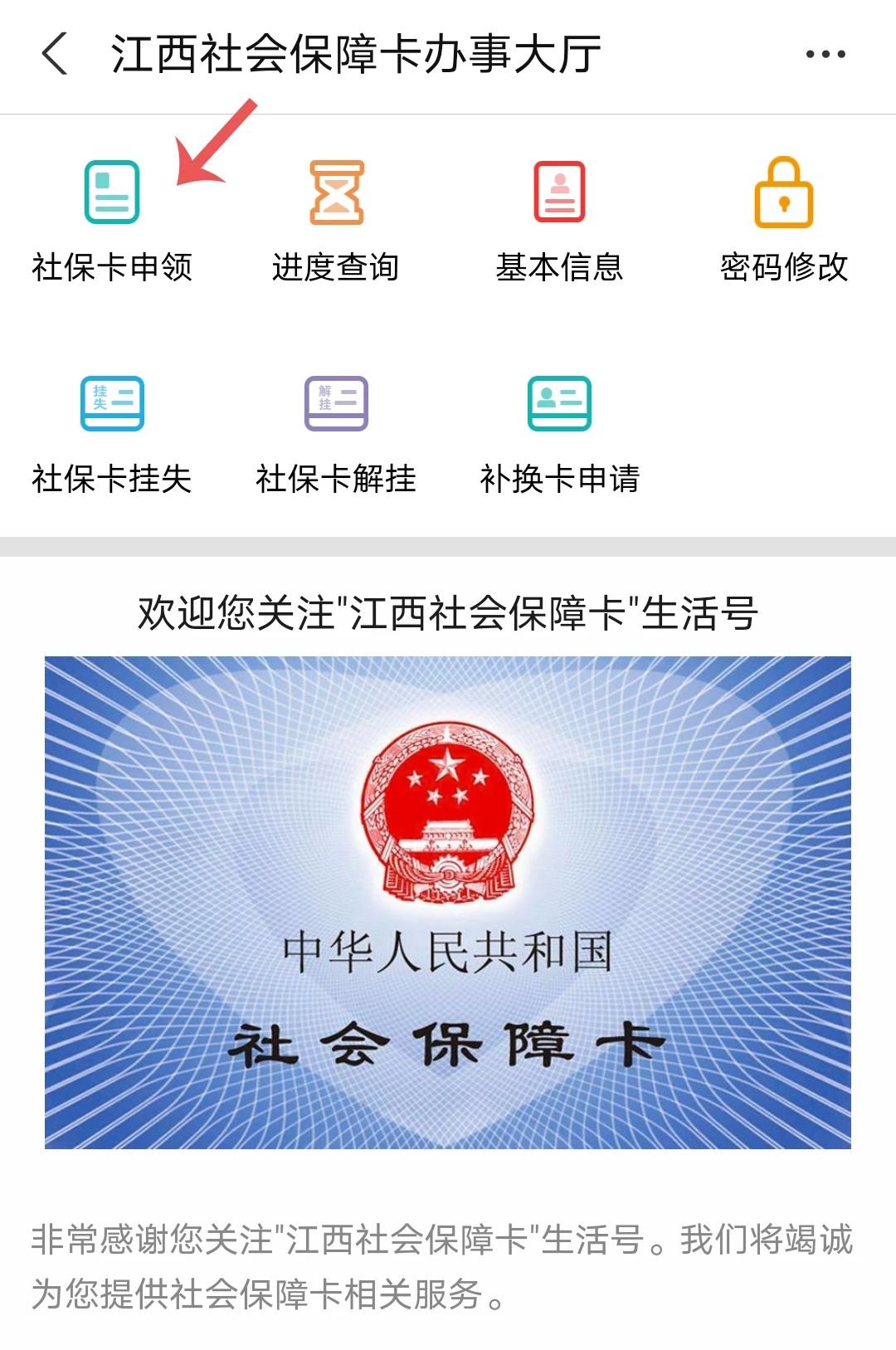 2.点击社保卡申领
