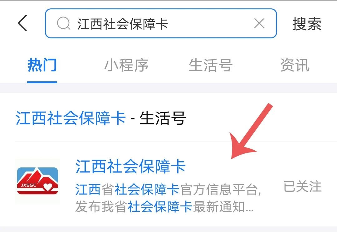 1.打开支付宝app搜索“江西社会保障卡”