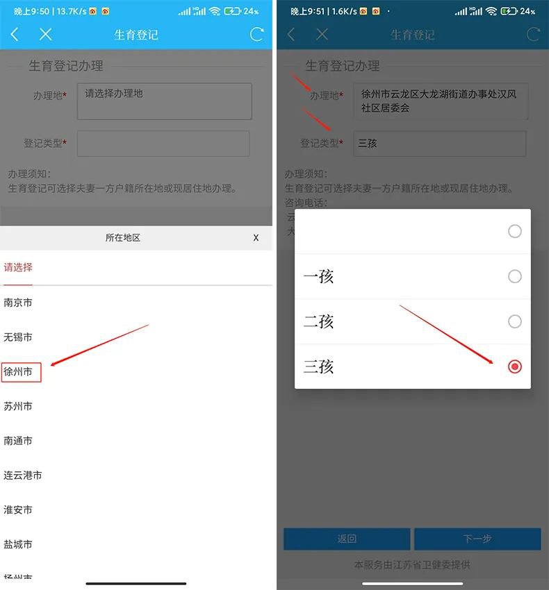 最后按照要求,填报夫妻双方及已生育子女信息,上传夫妻双方身份证、户口簿、结婚证原件照片或扫描件