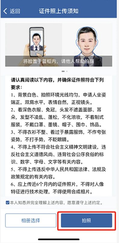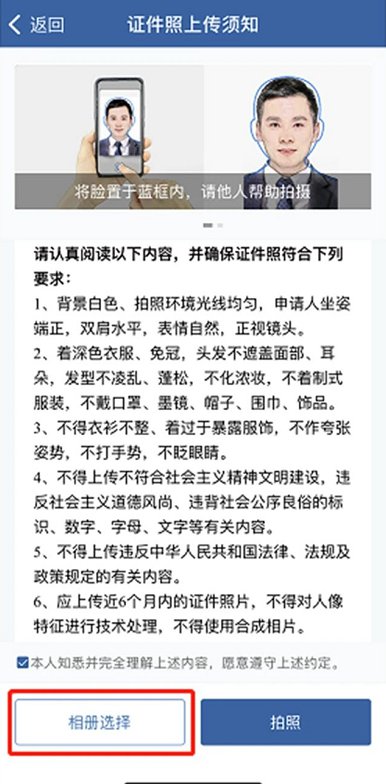 6、应上传近6个月内的证件照片,不得对人像特征进行技术处理,不得使用合成相片。