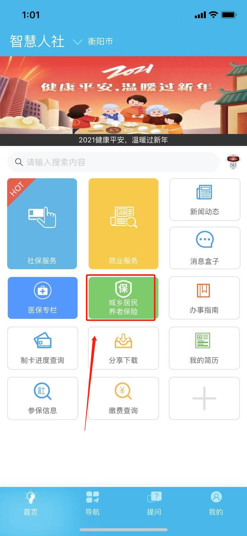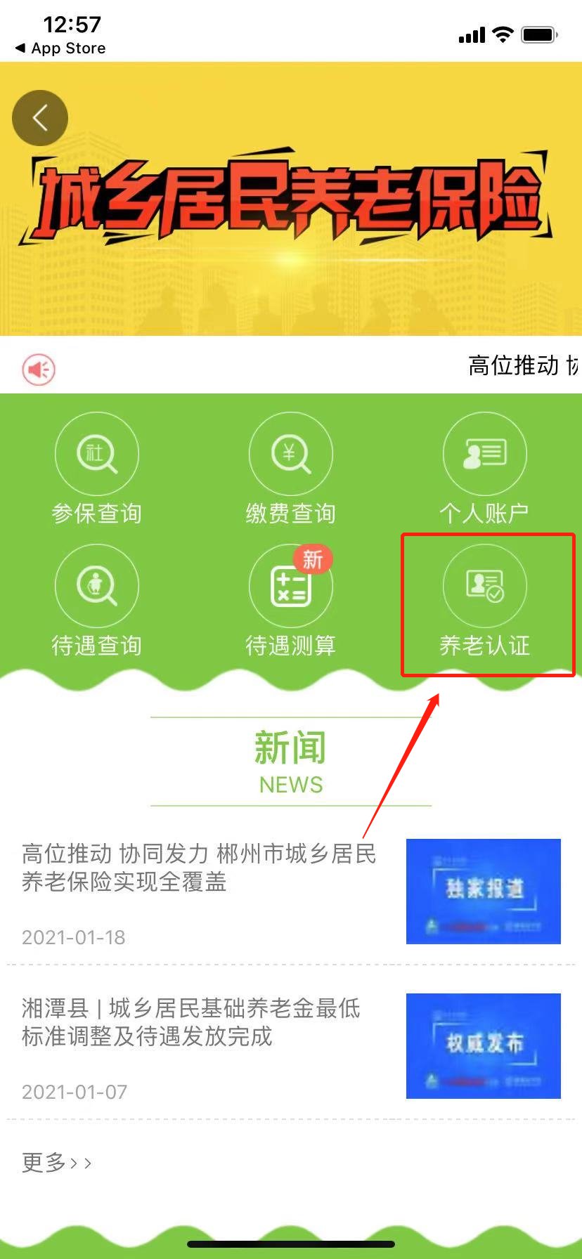 二、进入APP首页,点击“城乡居民养老保险”