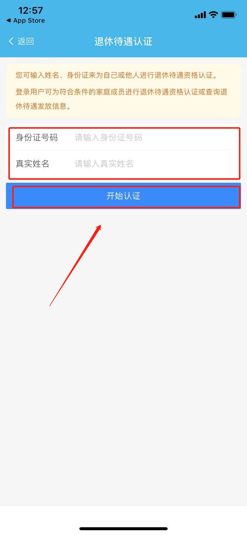 四、输入姓名及身份证号码,点击“开始认证”