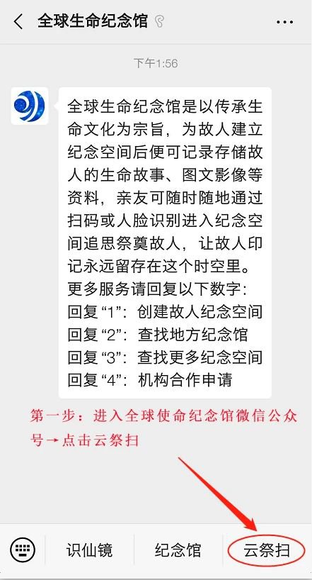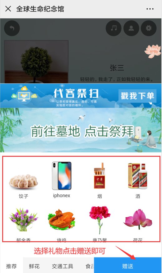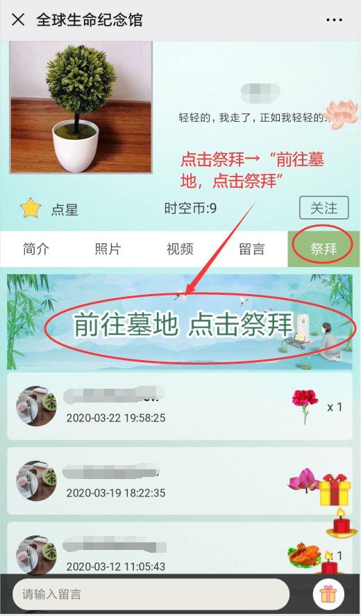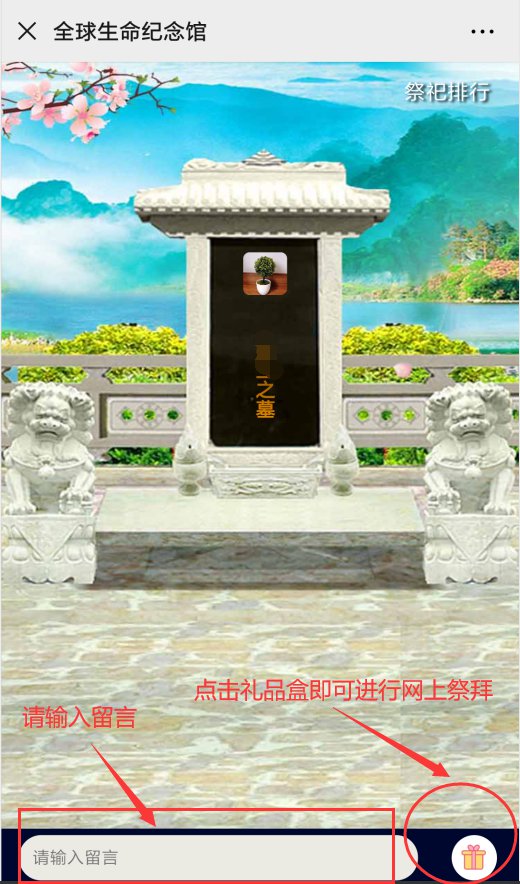 或者关注“全球生命纪念馆”微信公众号,点击菜单栏“云祭扫”