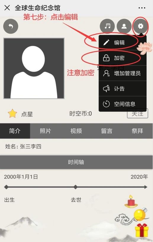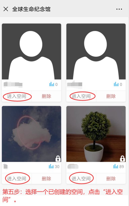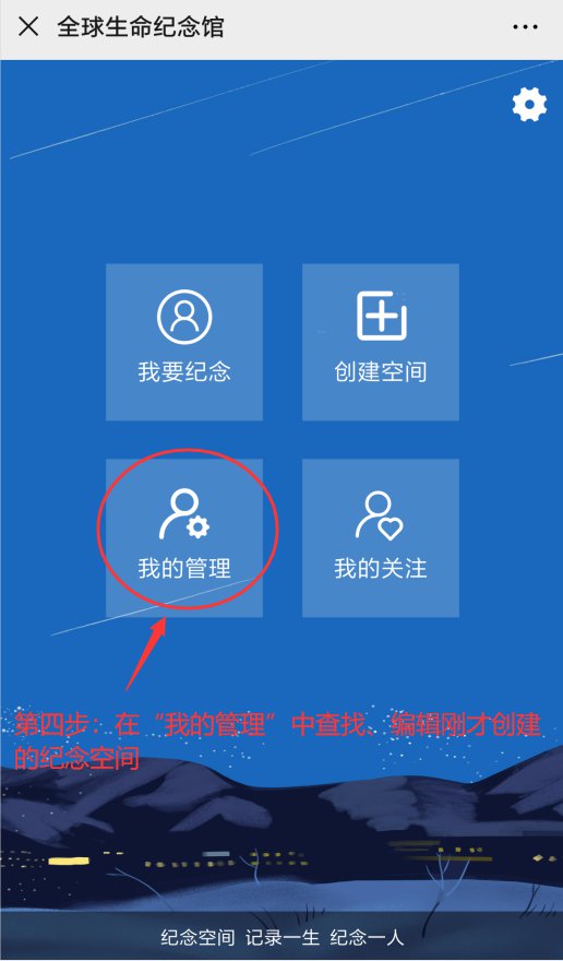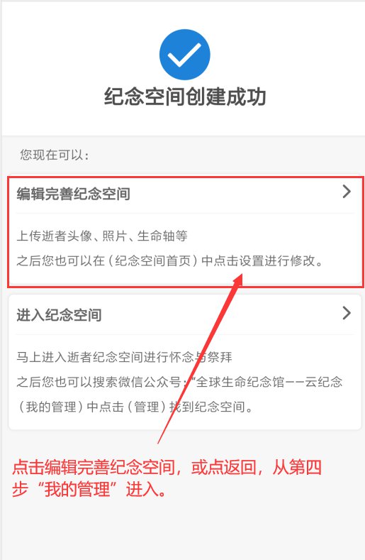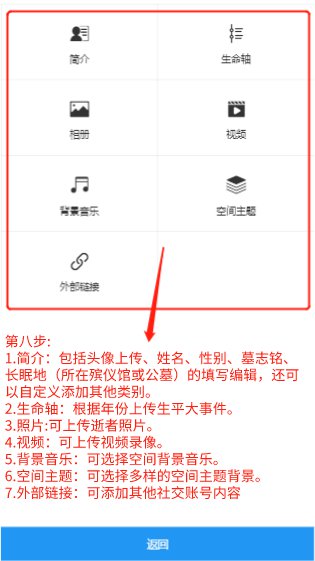 第二步:创建空间(新用户会有提示注册,请紧跟提示走即可)——完成后开始祭拜——转发亲友并保存收藏