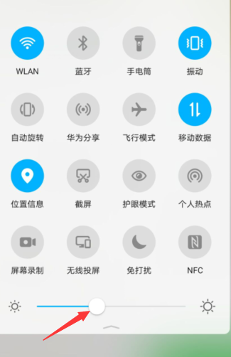 微信本身不能调节屏幕显示亮度,只能在手机里设置。下拉手机菜单栏,找到屏幕亮度条,左右滑动即可同步调节微信亮度。