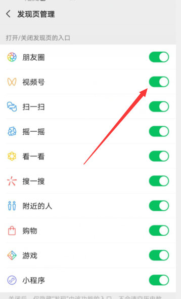 4、点击视频号右侧的按钮,使其呈现绿色即可。
