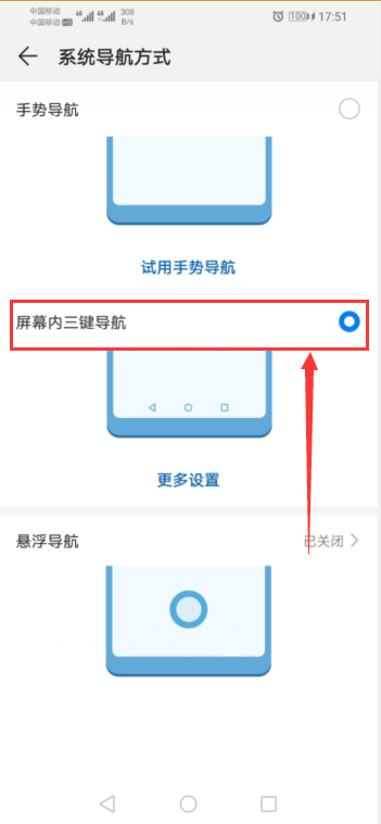 4、然后勾选【屏幕内三键导航】即可。