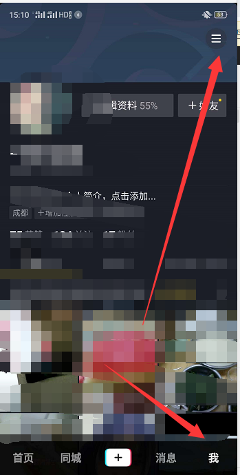 1、打开抖音后点击我的,点击页面右上角的三根横线。