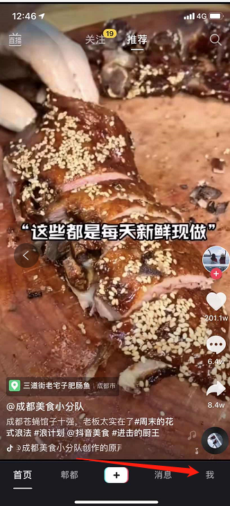 2、接着进入抖音后,点击右下角我,进入个人主页;