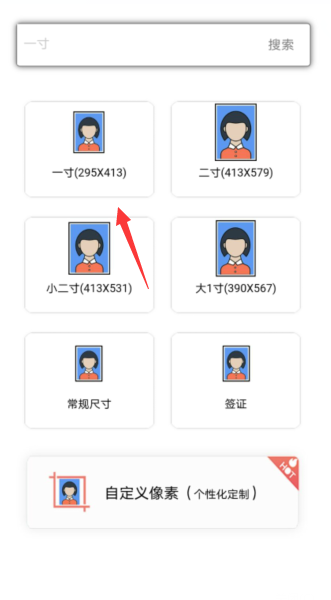 3、选择一寸。