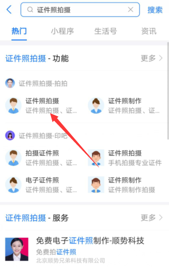 1、打开【支付宝】,在搜索栏搜索“证件照拍摄”。