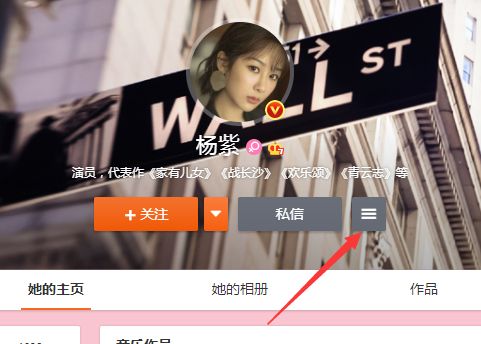 2、进入对方主页后点击私信右侧的三横。