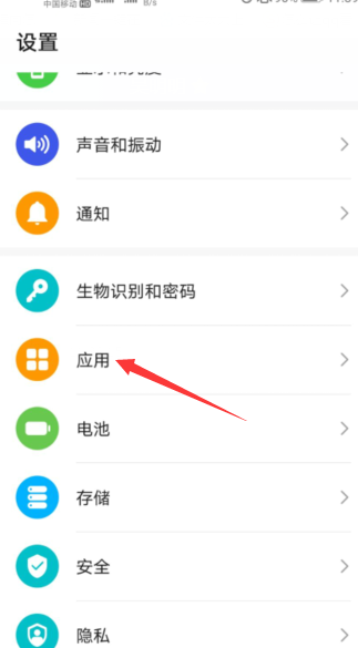 1、打开手机自带的“设置”,在设置里点击“应用”。