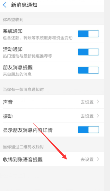 4、进入【新消息通知】界面,点击进入【收钱到账语音提醒】即可对其进行设置。