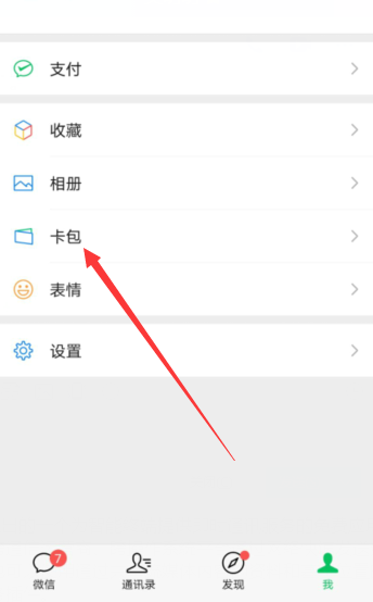 3、进入此页面后,即可看到【卡包】选项,点击此选项即可查看自己拥有的卡。